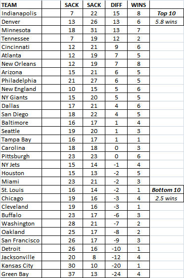 You may have noticed this week that I included each team’s 3rd down conversion rate, time of possession and sack total in the Statistically Speaking section. The first two are stats you will hear announcers and talking heads reference ad nauseum as keys to victory week in and week out. I’m not against either stat, but as you have probably already guessed with the Not Secret Sauce Standings, I much prefer to look at sacks both for and against. So each week I will tabulate how many teams won when winning each of the three statistics. Some teams will sweep and put a tick mark in each column while there will also be several ties. Here is how week 9 turned out: