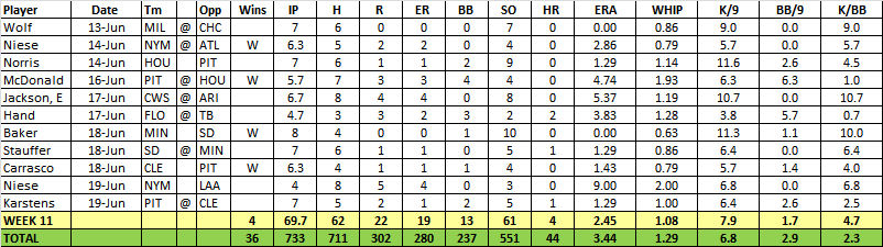 Another big week for Trolling the Wire that was actually the best week yet. With a 2.45 ERA, 1.08 WHIP, 1.7 BB/9 and 4.7 K/BB in 70 innings, this week’s waiver wire pickups set four new records. Only the K/9 failed to set a new high checking in at 7.9, just below the 8.2 record set in weeks 5 & 6.