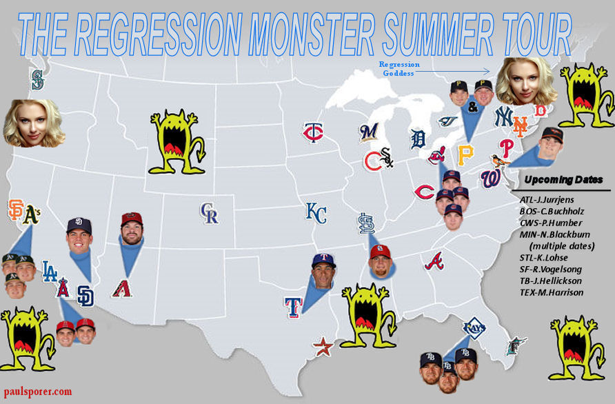 Trayvon Robinson (LAD, OF) – Robinson is a perfect example of why you have to be careful with Pacific Coast League numbers. He has already far exceeded his 2010 home run total of nine by clubbing 13 in the very hitter-friendly confines of Albuquerque. He has a particularly odd split so far this year hitting to a 1.224 OPS in day games, but just .791 at night. His speed is the more bankable asset in his arsenal as the power exists, but at a more modest level than his .538 SLG so far this year suggests. His patience seems to have regressed significantly this year, too. After a four year rise up to 0.58 BB/K last year (up from 0.27 in 2007), he’s back down to 0.26 this year.