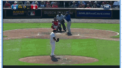 Here is a look at some Lynn fastballs from his April 14th home start against the Chicago Cubs. He is facing off against Marlon Byrd in the top of the 5th inning. Byrd is befuddled. (Please excuse the very amateur GIF’ing as these are literally my first GIFs ever on a program that is brand new to me. Hopefully you see improvement as the list progresses as I started to get the hang of it by the time I was working on the changeup leader.)