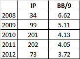 This is about Gonzalez, though. An incredible left-handed talent, Gonzalez has been coming into his own the last few years as he works through his mid-20s. Command and control have always been a problem for him as evidenced by the 4.4 BB/9 over his career. He has shown incremental improvement yearly since first reaching the majors in 2008, though: