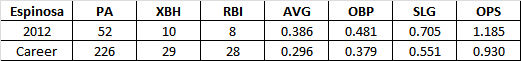 Espinosa has been so bad against right-handers both this year (.589 OPS) and during his career really (.676 OPS) that you could make a case that he should be a platoon player. The switch-hitter’s split has been as stark as ever this year to the point where fantasy managers should definitely be platooning him where applicable.