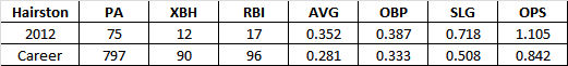 Speaking of platoons, Hairston is deployed that way by the Mets with great success. He has just 49 plate appearances against righties posting a paltry .600 OPS. I am surprised it took this long for him to become a platoon player with a career .225/.287/.408 line against righties in 1328 plate appearances.