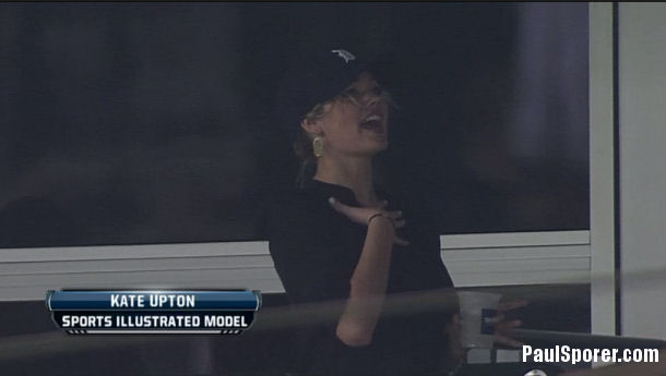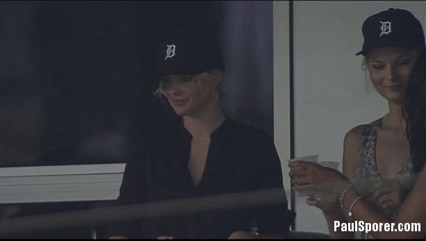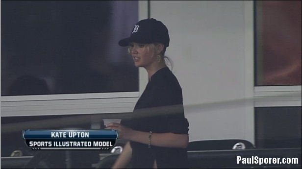 Coming back from break to start the bottom of the eighth, Fox Sports Detroit clued viewers in on a special guest in the ballpark as supermodel and native Michigander (born in St. Joseph) Kate Upton was shown with friends enjoying a Tigers win. I spontaneously combusted immediately, but now I’m back. She (unsurprisingly) looked great in her Tigers hat as she and her friends sang “Don’t Stop Believin'” by Journey… a Comerica Park (and any Detroit arena/stadium for that matter) staple. Now, for your viewing pleasure: