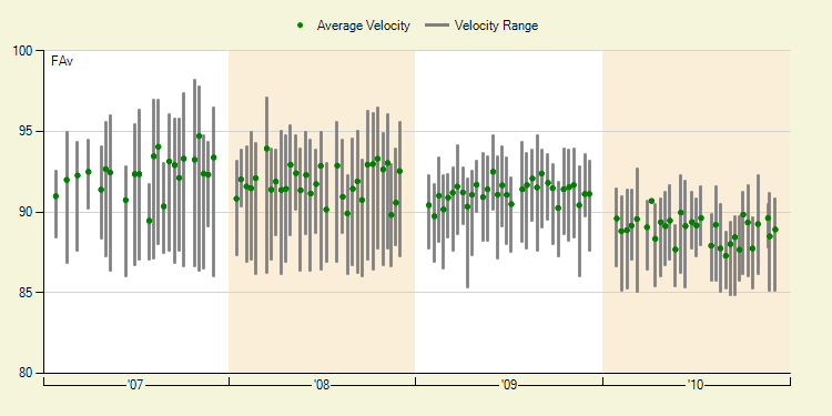 10. Carlos Gonzalez, OF, COL – I am probably a little lower on him that most, but remember what I said back in Part 1 about not overrating the most recent season one way or another. And like I mentioned again at the outset of this piece, a player’s floor is important to me, too. As a 25-year old with one full season and just 319 games in all under his belt, would it surprise if Gonzalez seriously regressed from his breakout 2010 season? His batting average was significantly inflated by a .384 BABIP (.355 career, .333 career-high before ’10) and he enjoyed the 7th-best home run per flyball rate in baseball (20.4%) which masked a drop in flyballs from his 2009 mark. All that said, he’s not some fluke scrub who came out of nowhere (3-time Baseball America top 32 prospect: 32, 18, 22 from 2006-2008) so just because I’m entertaining the notion that he could regress significantly, I am not saying it’s 100% that he will. If pressed for a stat line on his 2011 season, I would be somewhere in the neighborhood of .291 AVG, 98 R, 26 HR, 102 RBI, 22 SB. He still cracks the top 12 with ease because his ceiling is a season that matches or even exceeds 2010, he is that talented.