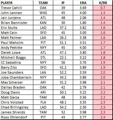 Ari – Ryan Roberts is on pace for 25 HR, 21 SB, 81 R and 74 RBI yet still not fully owned. Check your wire. Better than 1.0 K/BB is impressive, too.