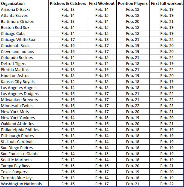 I’ll leave you with a breakdown of reporting dates for each organization as we get closer & closer to the beginning of Spring Training: